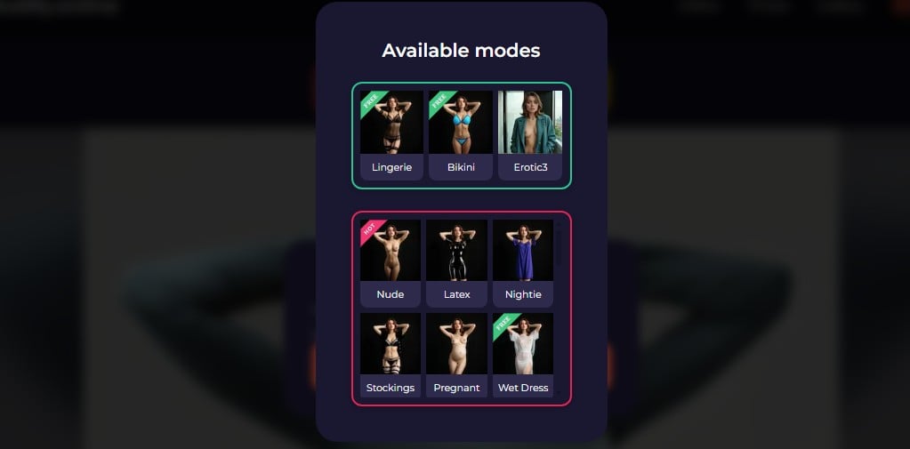 - Seven modes for fun. You can choose from different nude versions, with actions such as undress, lingerie, bikini, hentai, and even videos.