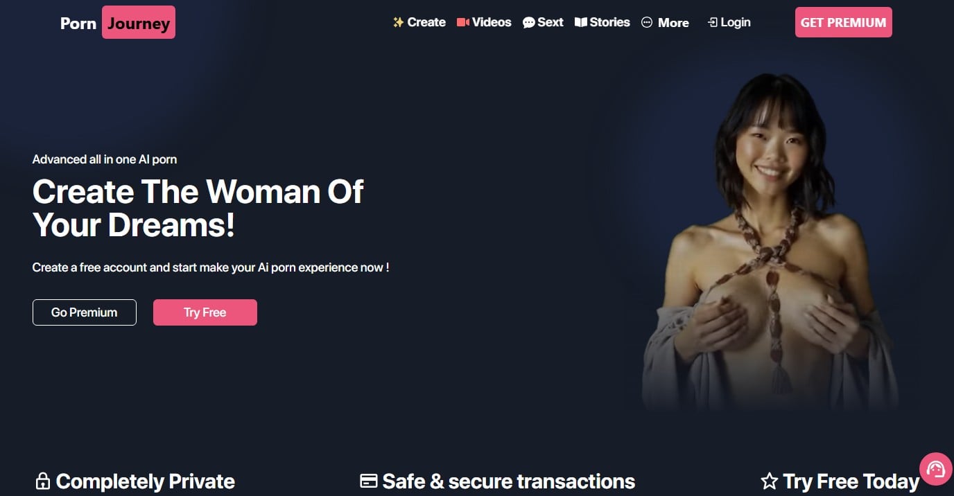 PornJourney lets you create images and videos of any type of girls, realistic and hentai style. Foolproof interface + tons of options + stunning image quality.
